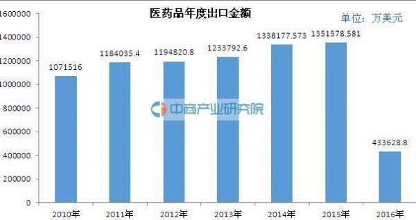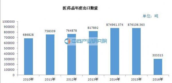 2016年前4月醫(yī)藥品的出口數(shù)量為303315噸
